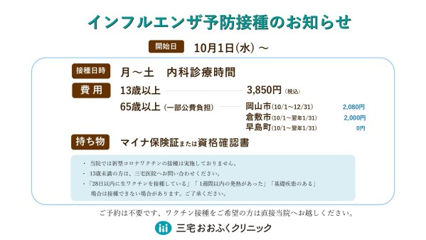 10月1日(水)よりインフルエンザ予防接種がはじまりました。