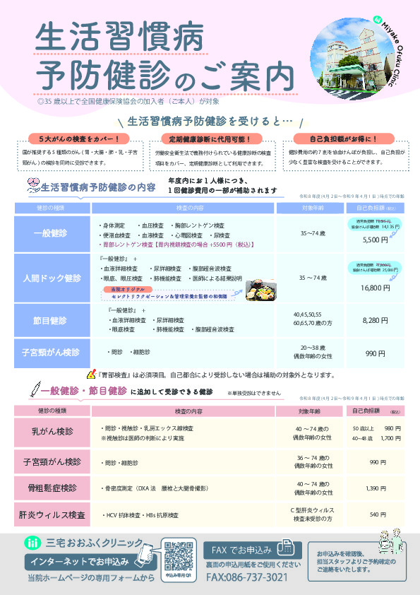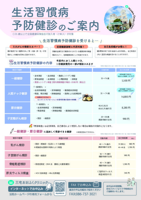 • 2026年度 生活習慣病予防健診の申込を受付中